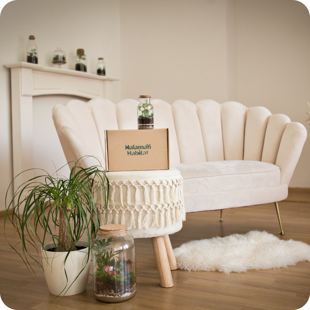 Check out our DIY Set of Terrarium Anne. We will send you all the materials needed anywhere you like!